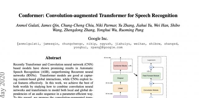 同样备受业界认可的还有Conformer 模型,该模型基于 Transformer 架构改进而来,成为语音识别技术的重要进展。这是余家辉与吴永辉共同开发的成果。