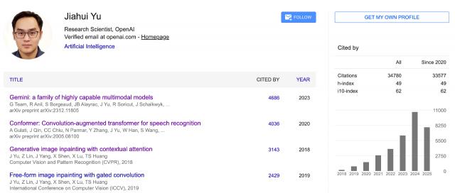 这是余家辉在谷歌学术上的论文引用数,虽说远远不敌 Geoffrey Hinton、LeCun、李飞飞等大神,但在 AI 领域也意味着不小的影响力。