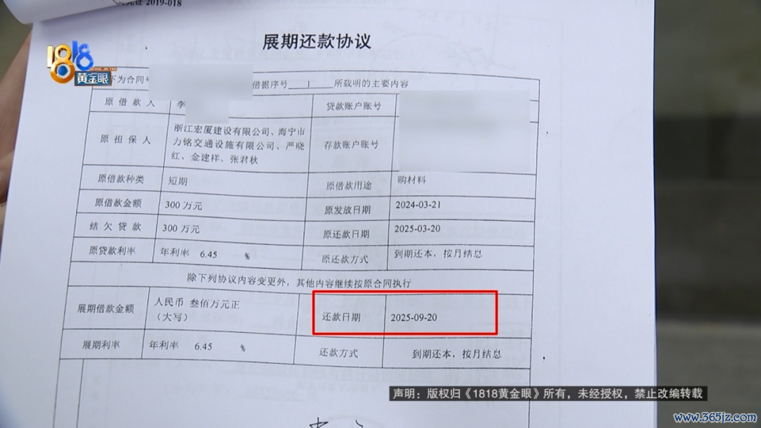 2024年3月,他又在海宁农村商业银行贷了300万,保证人是浙江宏厦建设有限公司,周期一年,每月还16000多元。