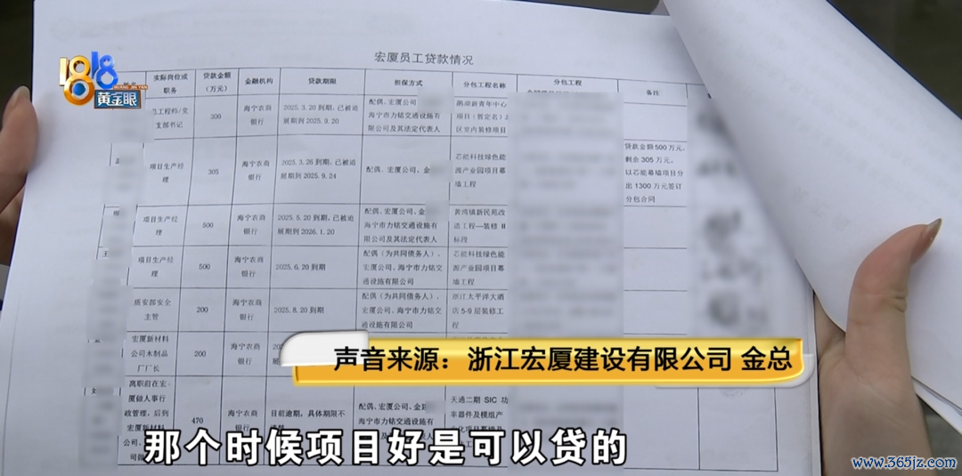 浙江宏厦建设有限公司 金总:那个时候项目好是可以贷的,银行有这个政策的,项目经理贷款可以的。后来公司越来越差了,贷了以后还不出来了,最主要是好的工程少了。我也在想办法,后面这几年给他还了,这个他们终身背贷,公司做不到,其他的我现在也没办法。