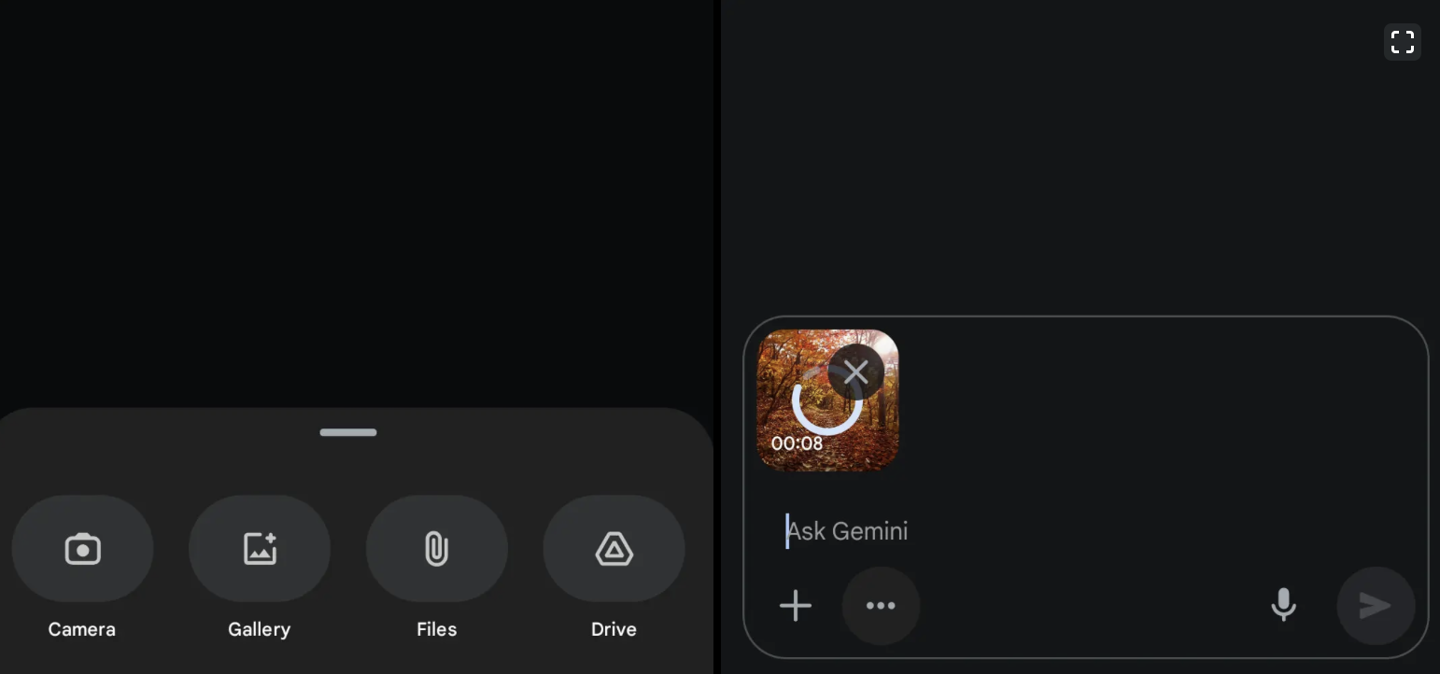 需要注意的是,相应视频上传功能目前正在逐步上线中,不同设备和账号可能开放时间略有差异。现阶段相应功能支持Gemini 2.5 Flash / 2.5 Pro 模型,如果用户在上传文件时可看到“文件类型不受支持”的提示,这说明该功能尚未在其账号上开放,需要等待一段时间。