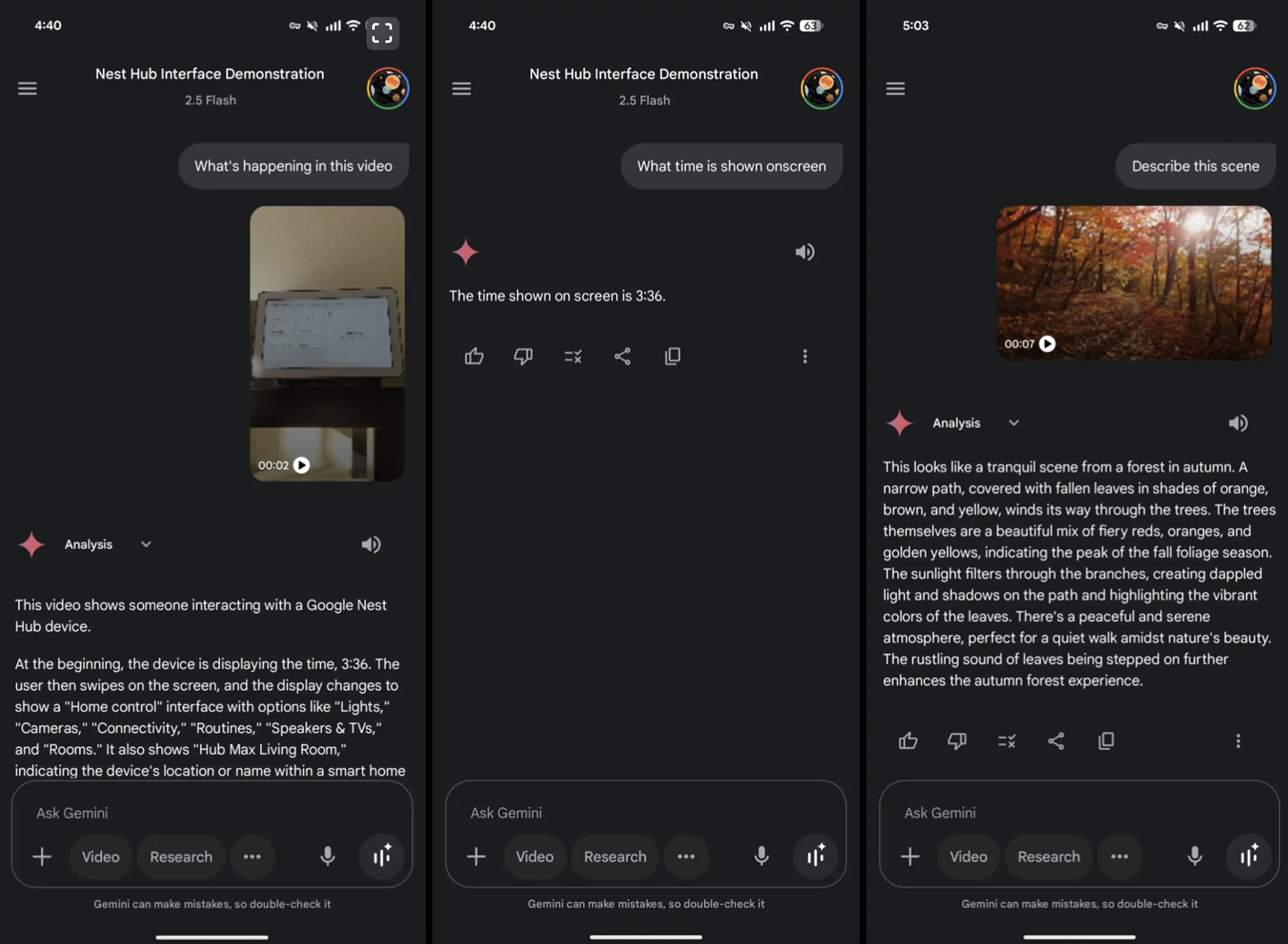 据介绍,在用户上传视频后,Gemini会根据用户的提示词对视频内容进行逐帧分析,以回答用户提出的内容。例如用户可以将自己的监控摄像头录屏上传Gemin内,同时询问“视频是在什么时候拍摄的”,Gemini 便会根据视频中的时间码并结合视频内的环境情况给出自己的见解。